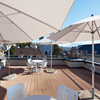 La terrasse offre un panorama extraordinaire sur l'église "Hofkirche", le lac des Quatre-Cantons, le Centre de la Culture et des Congrès (KKL) conçu par Jean Nouvel, et le Pilate.
