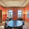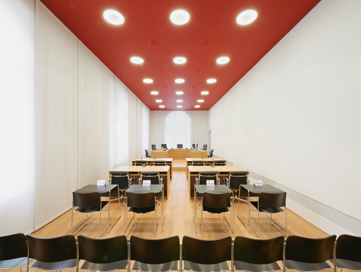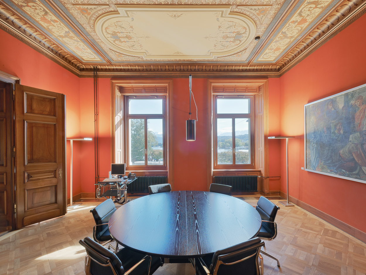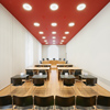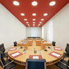 Ce local d'un rouge vif sert de salle de discussion et de délibération à la présidence et à la direction du tribunal.