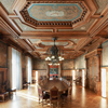 Un concept d'éclairage finement conçu fait habilement ressortir la peinture du plafond.