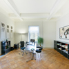 Les bureaux de la chancellerie sont équipés d'éléments anthracite encastrés de manière rigoureusement géométrique.